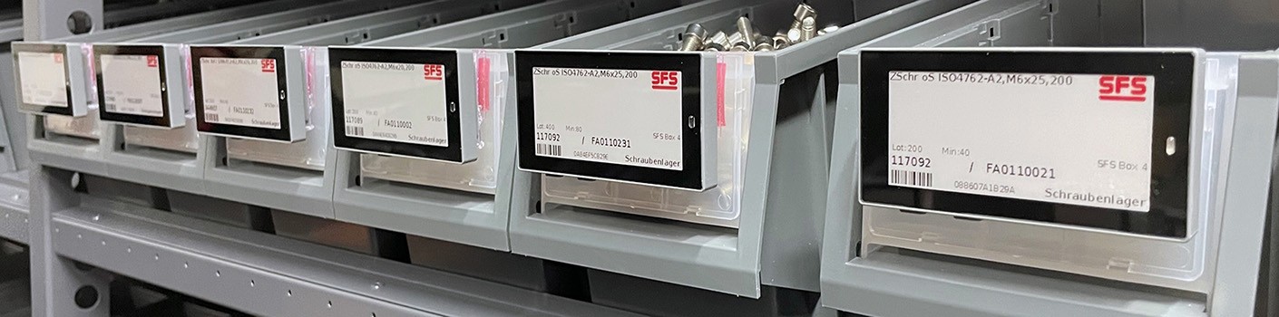 Ein besonders wichtiger Fortschritt in eLogistics® NXT betrifft die Modernisierung aller Triggersysteme aus der alten Softwaregeneration. Das System pushLOG hat eine komplett neue Technologie erhalten und ist nun mit innovativen e-Ink Labels ausgestattet. Diese Neuerung optimiert den Prozess von Mutationen und Änderungen und beschleunigt das In- und Outphasing neuer Artikel um über 80%.
