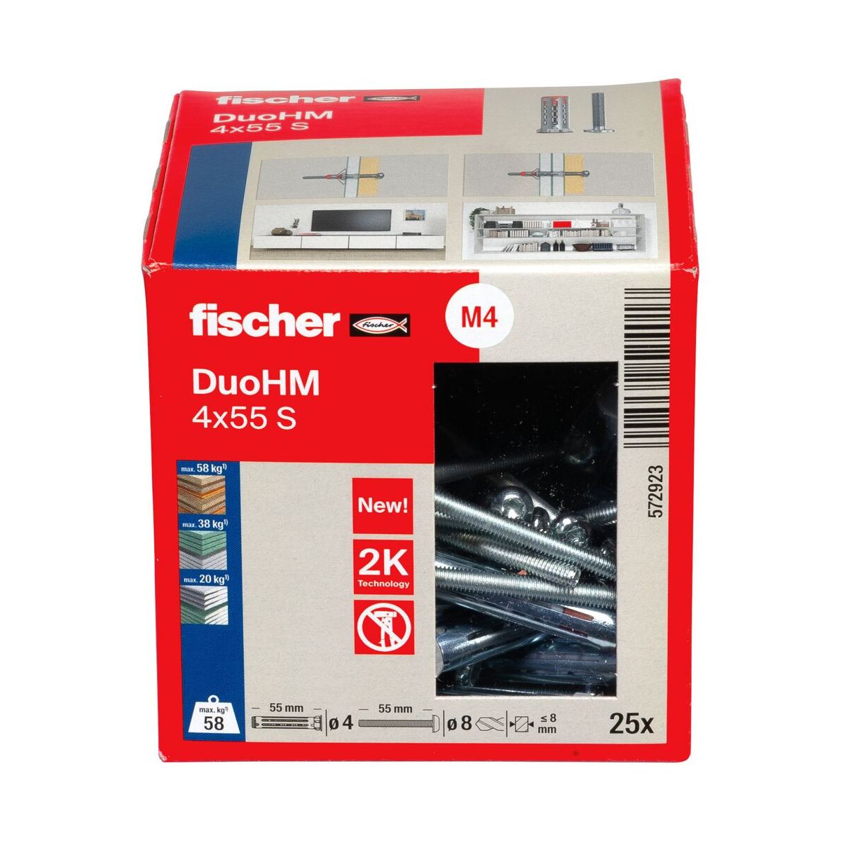 Der Hohlraumdübel DuoHM deckt mit nur einer Länge alle gängigen Baustoffdicken von 9,5 - 30 mm ab. Durch die neue und einzigartige Kombination aus Nylon und Metall, ermöglicht der DuoHM hohe Lasten und maximale Flexibilität in Plattenbaustoffen. Die Metallhülse klappt hinter dem Baustoff und presst sich an die Plattenrückseite, der Kunststoffdübel verspreizt sich in der Platte. Die Montage des DuoHM erfolgt schnell und einfach mittels Akkuschrauber ohne zusätzliches Setzwerkzeug. Dies reduziert die Montagezeit bis zu 50% im Vergleich zu herkömmlichen Plattendübeln. Durch das metrische Innengewinde kann das Anbauteil mehrfach eingeschraubt und wieder gelöst werden. Neben der mitgelieferten Schraube, kann der DuoHM auch mit anderen metrischen Schrauben angewendet werden. Die Mitdrehsicherung aus Nylon schützt die Oberfläche des Baustoffs vor Beschädigung. Aufgrund des schmalen Dübelrands ist der Dübel hinter dem Anbauteil nicht mehr sichtbar.