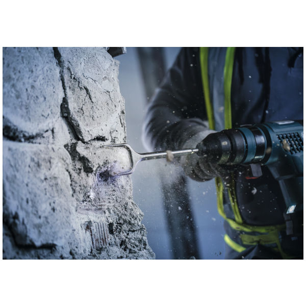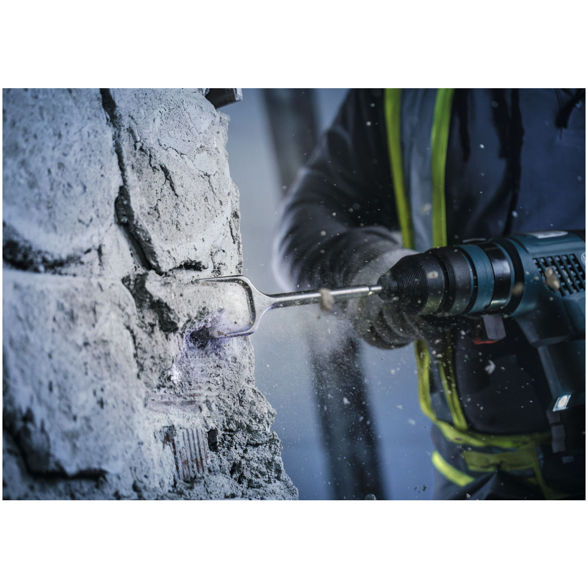 Der Spatmeißel mit SDS plus trägt in Mauerwerk und Mörtel viel Material ab.