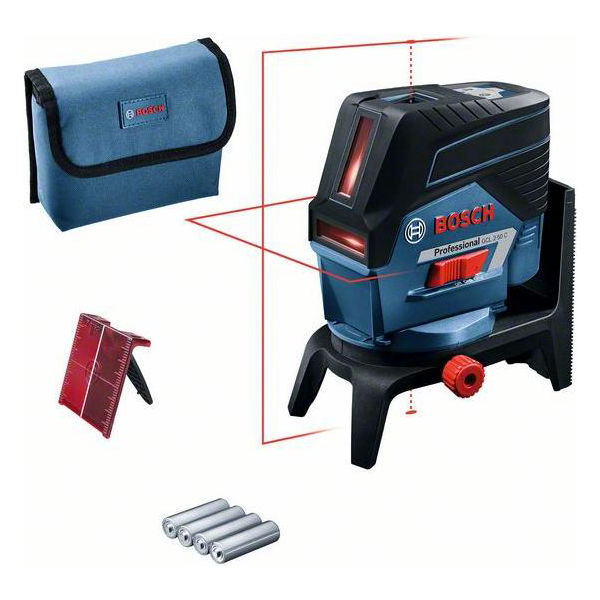 Kombilaser GCL 2-50 C. Der Kombilaser GCL 2-50 C Professional bietet für maximale Effizienz zahlreiche intelligente Funktionen. Über eine Bluetooth®-Verbindung ist ein Ausrichten des Werkzeugs per Fernsteuerung über eine Smartphone-App möglich, während dank Dual Power Source-Technologie der Betrieb sowohl mit 12-V-Li-Ion-Akku als auch mit Standard-Alkalinebatterien durchgeführt werden kann. Für die präzise Positionierung um die zentrierten Lotpunkte herum bietet die optionale RM 3 Professional eine motorgetriebene Steuerung, während mit der RM 2 Professional manuelle Anpassungen vorgenommen werden können. Das Gerät ist für horizontales und vertikales Ausrichten mit einem langen Überschwingen von fast 360° konzipiert und eignet sich für Projekte wie Trocken- und Innenausbauarbeiten. Die horizontalen und vertikalen Laserlinien und die beiden zentrierten Lotpunkte des GCL 2-50 C Professional bieten eine optimale Sicht von bis zu 20 m Entfernung ohne Empfänger und bis zu 50 m Entfernung mit Empfänger. Im Lieferumfang enthalten: AA1 Alkaline Akku-Adapter (1 608 M00 C1B), Laserzieltafel, Schutztasche, Drehhalterung RM 2 Professional (0 601 092 700), 4x 1,5 V-LR6-Batterie (AA)