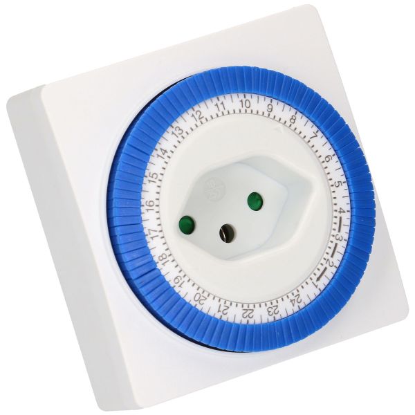 This mechanical indoor timer makes your everyday life easier. It allows you to set up to 24 different time slots for powering a connected device. Thanks to its simple operation, you can program your decorative lighting, aquarium lights, fans, etc. in no time and ensure that the devices only consume power when you want them to. Up to 96 switching times can be set per day, with the shortest operating time being 15 minutes.