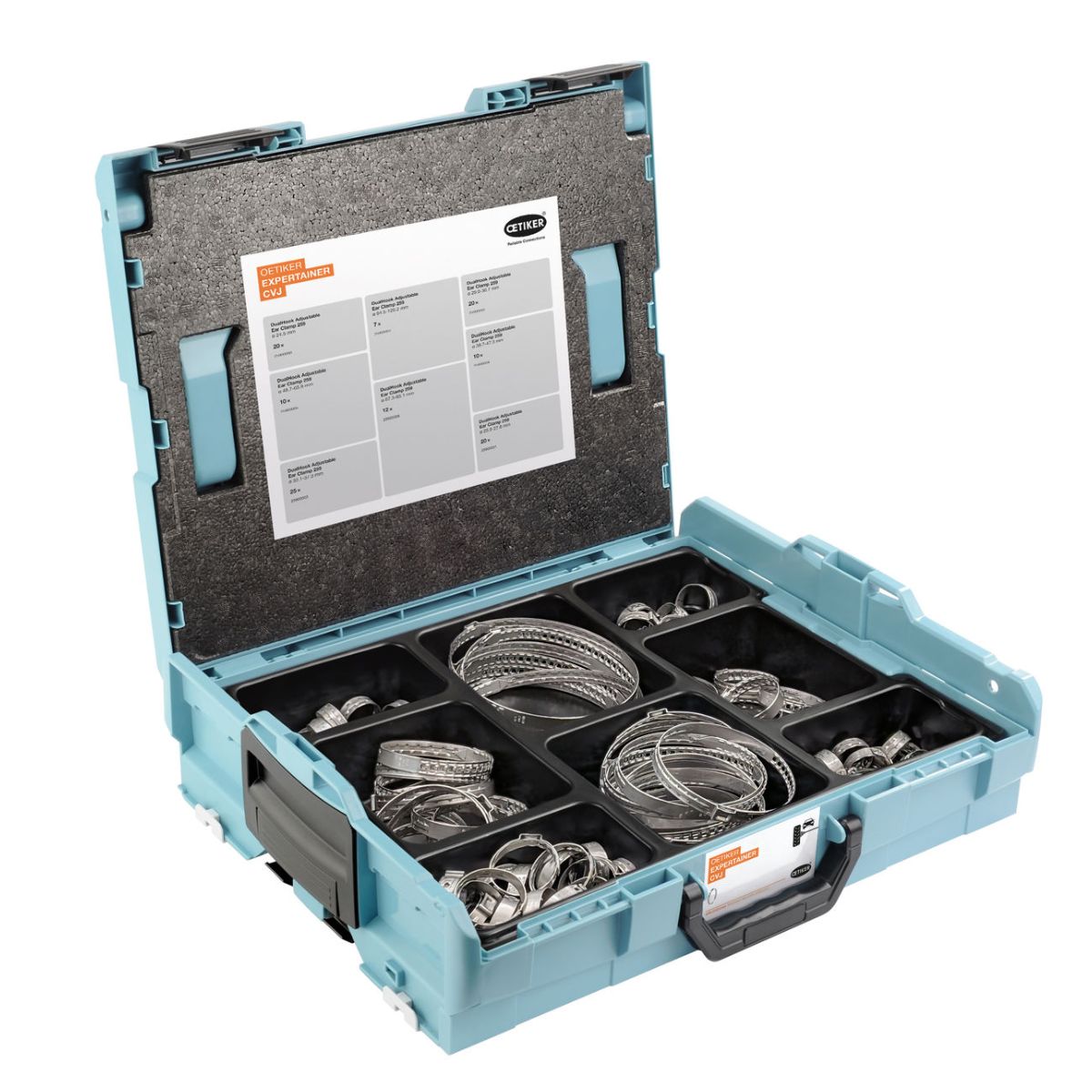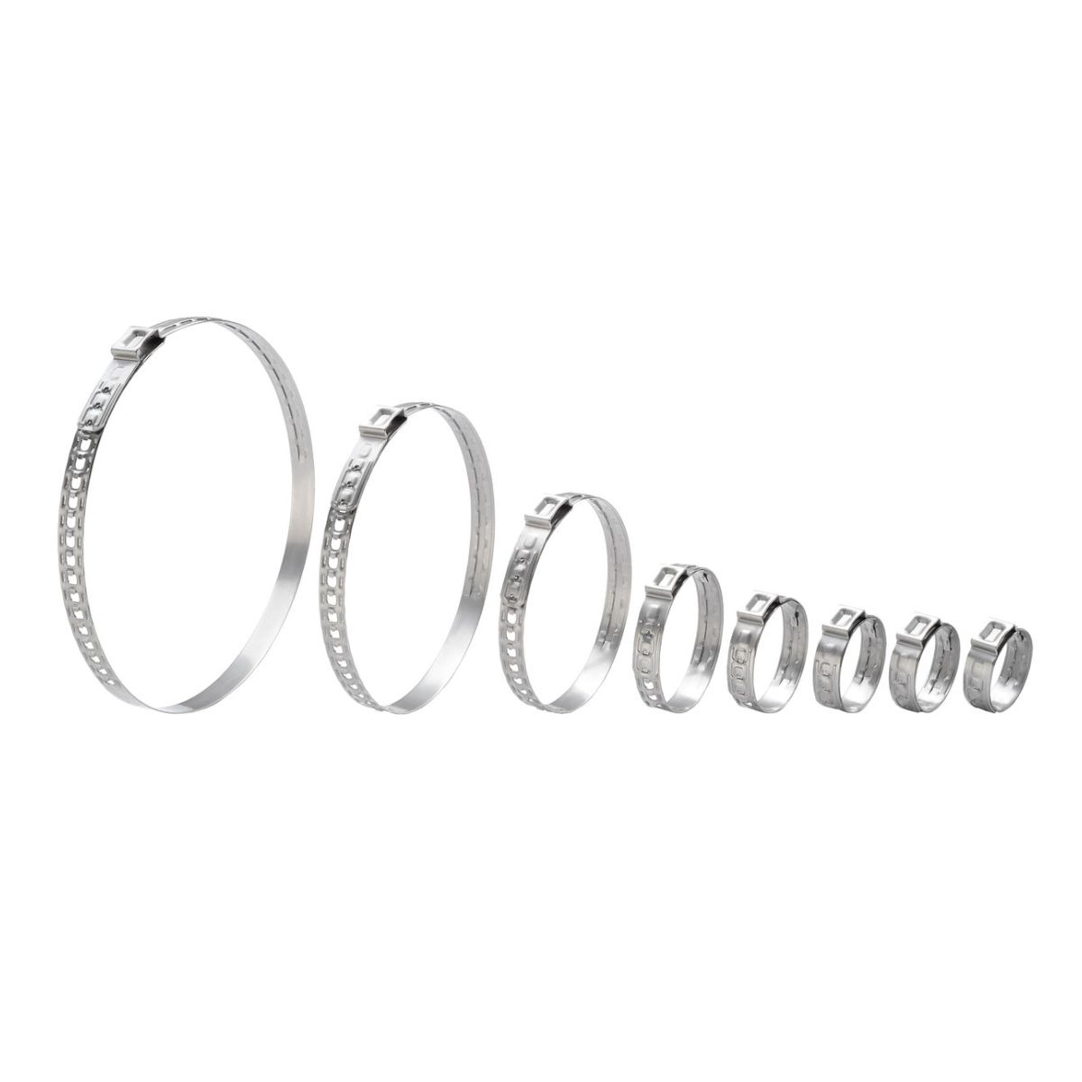 Assortment of Oetiker Stepless Adjustable Ear Clamps for strong and reliable sealing of a wide range of applications covering 24.5-120mm diameter.