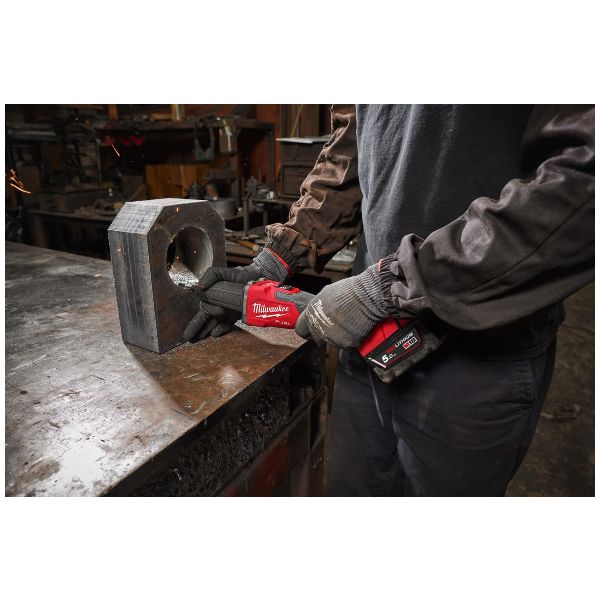 Brushless POWERSTATE™ motor with corded performance, up to 2 min of grinding on a 5. Ah battery and up to 1x more tool life REDLINK PLUS™ intelligence system delivers an advanced digital overload protection for tool and battery and uniquely enhances the tool performance under load REDLITHIUM™ battery pack provides superior pack construction, electronics and fade-free performance to deliver more run time and more work over pack life Universal reception to fit both, 6 and 8 mm accessories Slim handle design Removable dust screen to prevent debris entrance, prolonging motor life Rubber front provides most comfortable handling Line-lock out function to prevent automatic start up Fuel gauge displays remaining charge Flexible battery system: works with all MILWAUKEE® M18™ batteries Supplied with 6 mm & 8 mm collet, 15 mm & 17 mm open ended spanner, 2 x dust screens