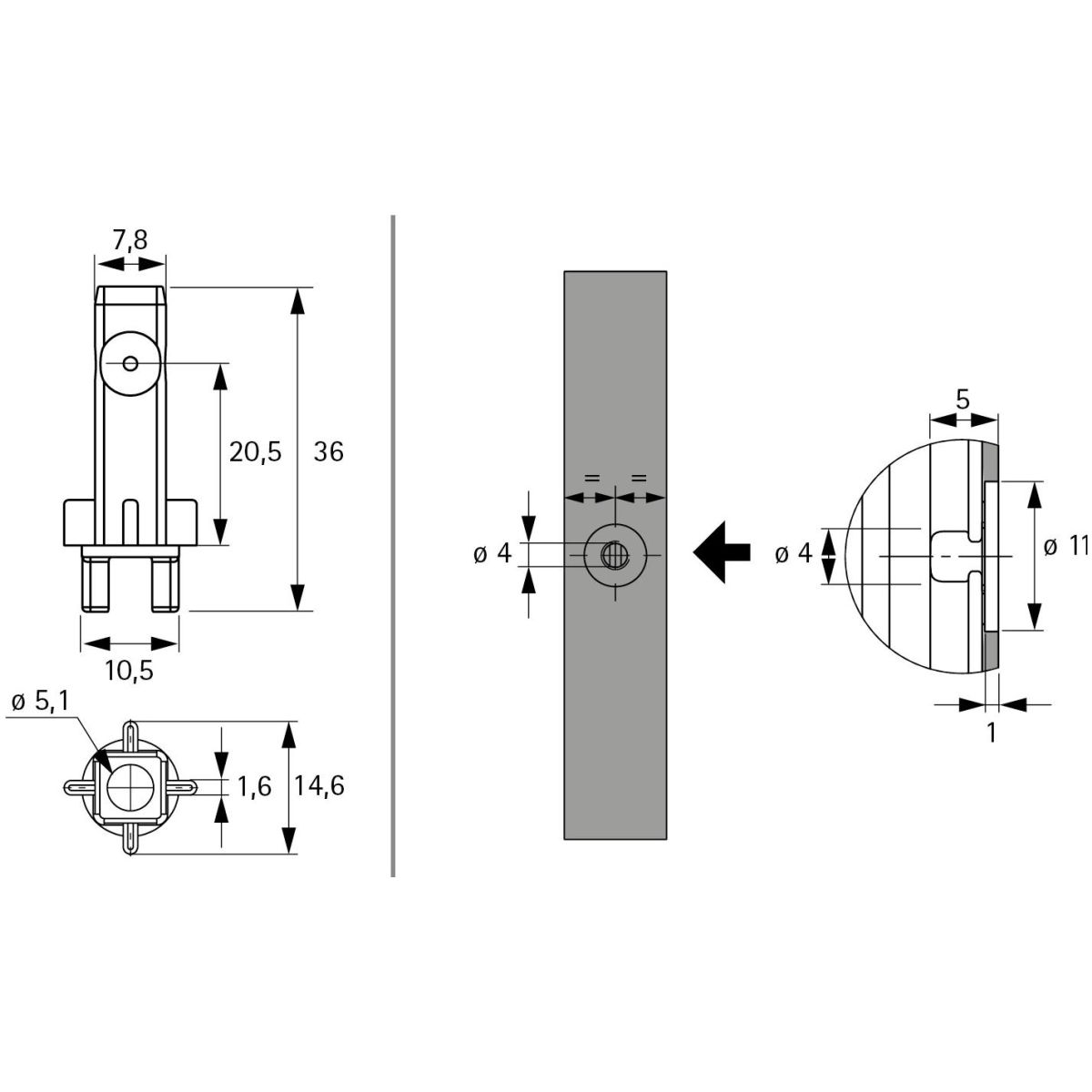 • Une vis de blocage Cadro est nécessaire par raccord universel pour la fixation dans le profilé, veuillez commander séparément la réf. 9 298 859 / 9 298 860
