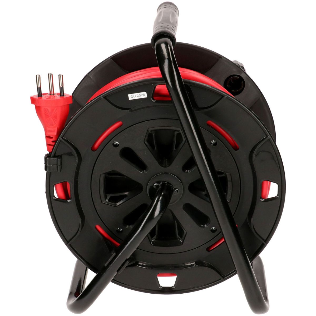 enrouleur de câble noir, rouge / 230V/10A / protection thermique / prise: 4x type 13 / alimentation: H05VV-F3G1.0, 15m, rouge, avec fiche: type 12