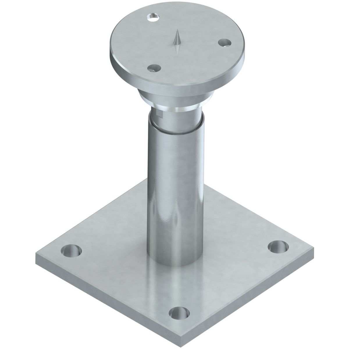 Le pied de poteau Power Base peut être segmenté et est réglable sous charge. La liaison entre la partie supérieure et la partie inférieure s'effectue à l'aide de l'écrou-raccord comme fermeture vissée, ce qui garantit un centrage optimal pendant le montage à travers le cône de la plaque de tête