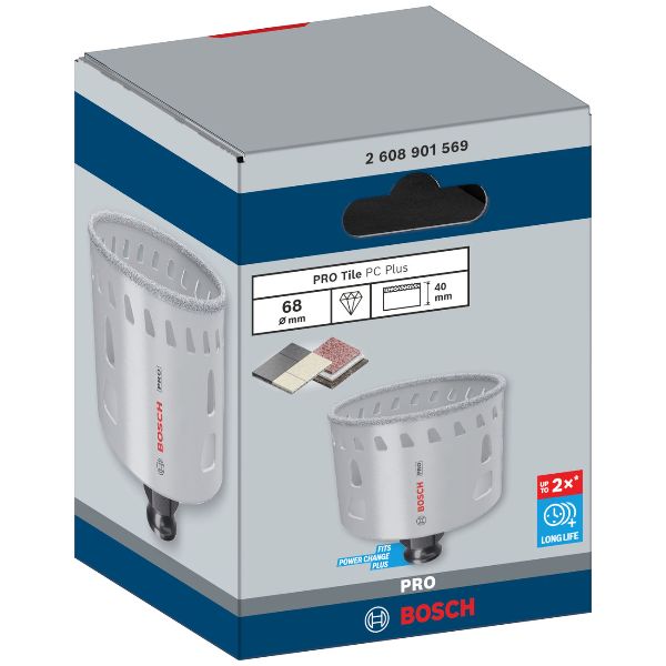 Durata fino a 2 volte superiore rispetto a una sega a tazza diamantata standard - La realizzazione di un buon foro nelle piastrelle dure, nella pietra o persino nel vetro è un compito difficile per qualsiasi professionista, ma con la tua abilità e la sega a tazza PRO Tile puoi affrontare il lavoro con fiducia. Le grane diamantate di alta qualità su un bordo continuo ti consentono di iniziare il taglio in posizione inclinata, e non ti serve nemmeno una guida. PRO Tile presenta un design altamente efficace e una lunga durata. I grani sono saldamente fissati tra loro mediante brasatura. Le scanalature termiche disperdono gli accumuli di calore indesiderati, garantendo prestazioni di lunga durata. Da utilizzare con il mandrino senza chiave Bosch Power Change Plus: offre precisione e robustezza