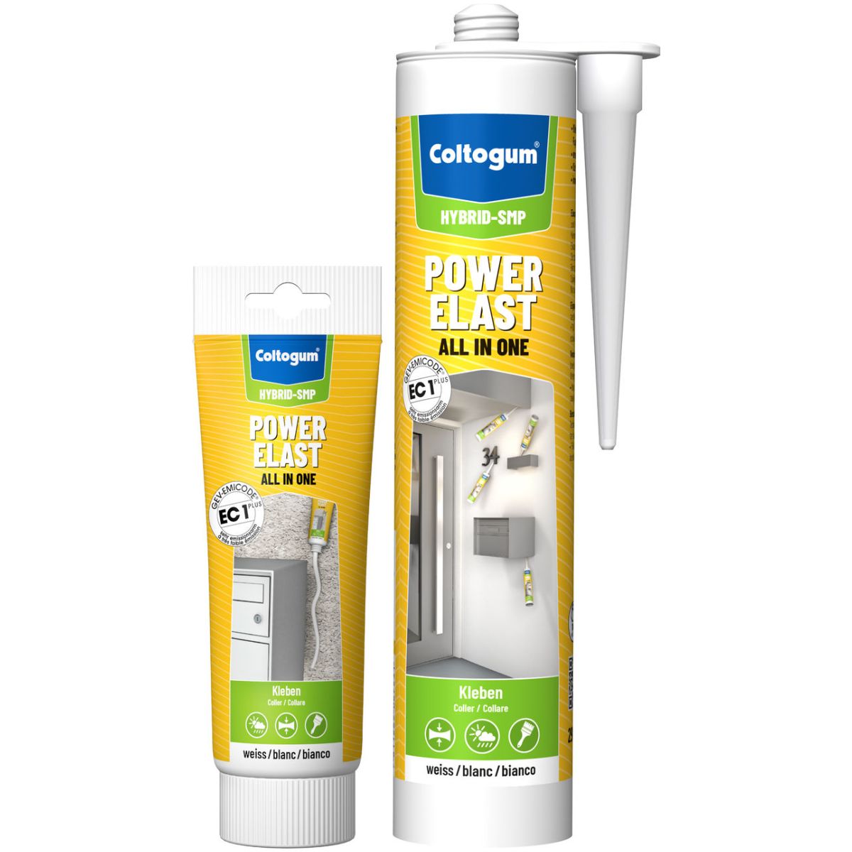 The adhesive is suitable for permanently bonding glass, mirrors, wood, stone, brick, concrete, plaster, metals, plastics (except PE, PP, Teflon, bitumen, etc.), usually without priming. Its exceptional adhesion spectrum also allows it to be applied to damp substrates. Due to its sealing properties, Power Elast is also used for cable ducts and in the ventilation and air conditioning sector and is suitable for permanent, dynamically resilient bonding in the entire wood, construction and metal industries. Not suitable for natural stone, please check our Coltogum® Strong Power.